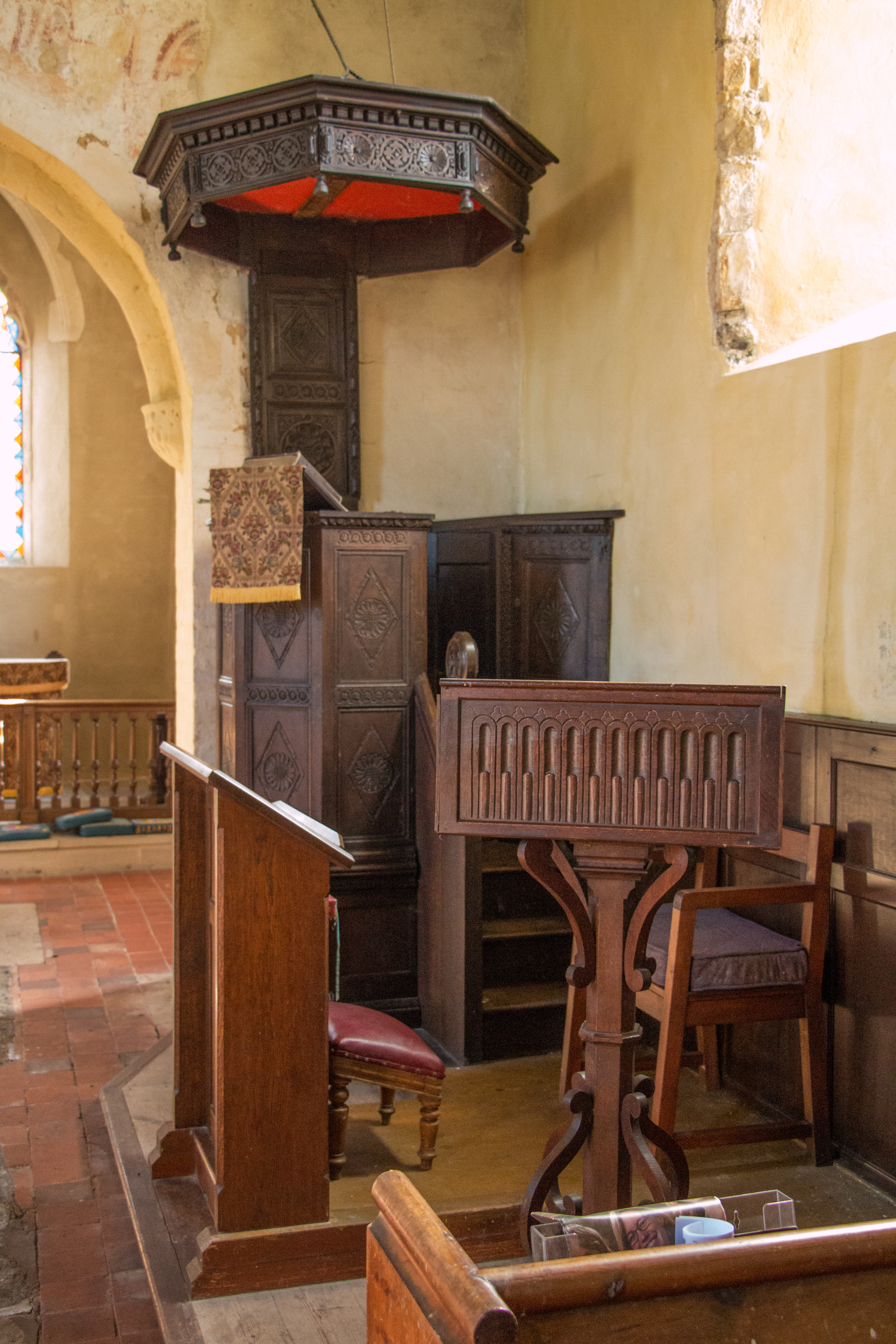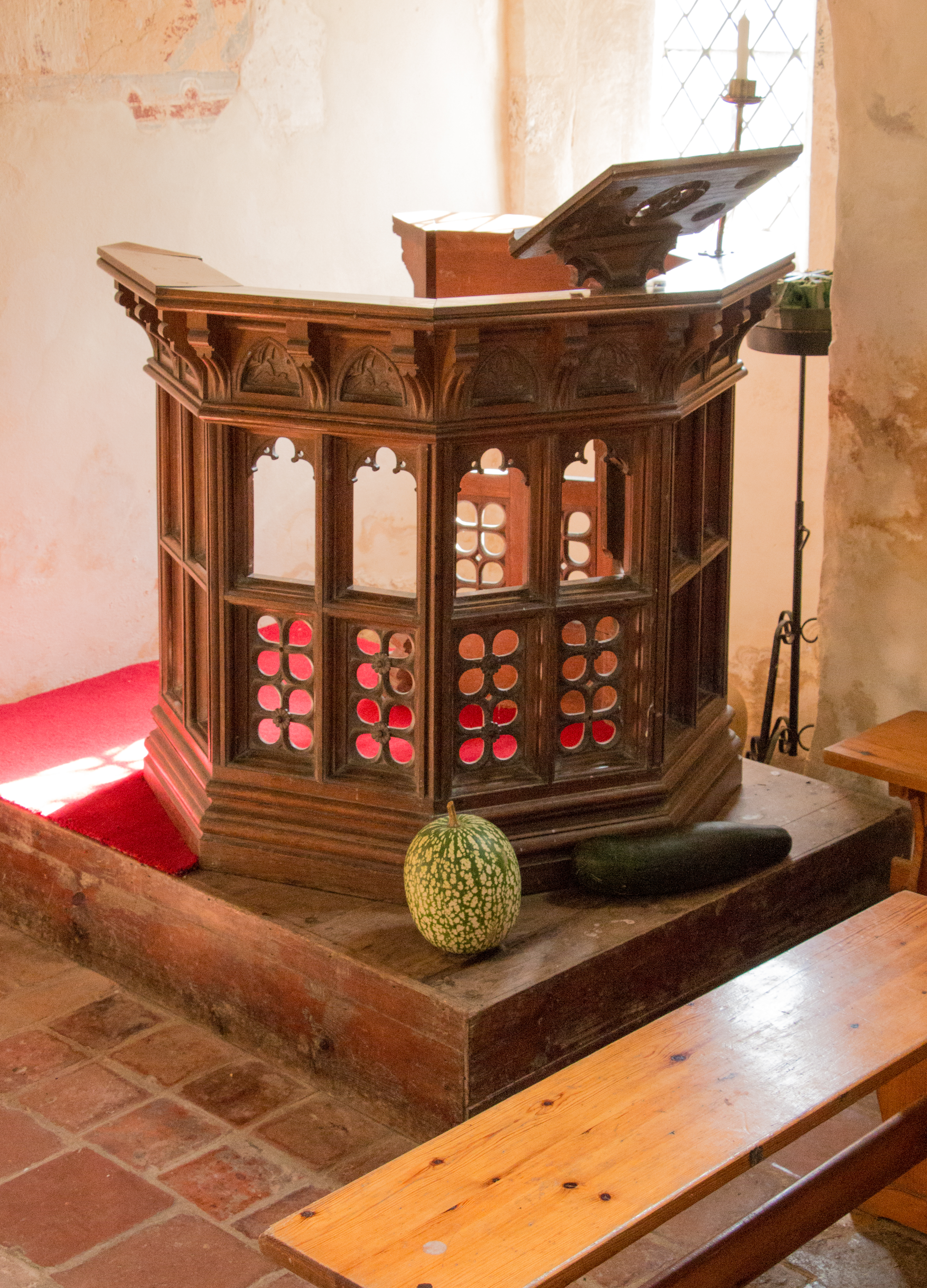 for a Jacobean pulpit and an old, hand-pumped wooden organ. Coombes is